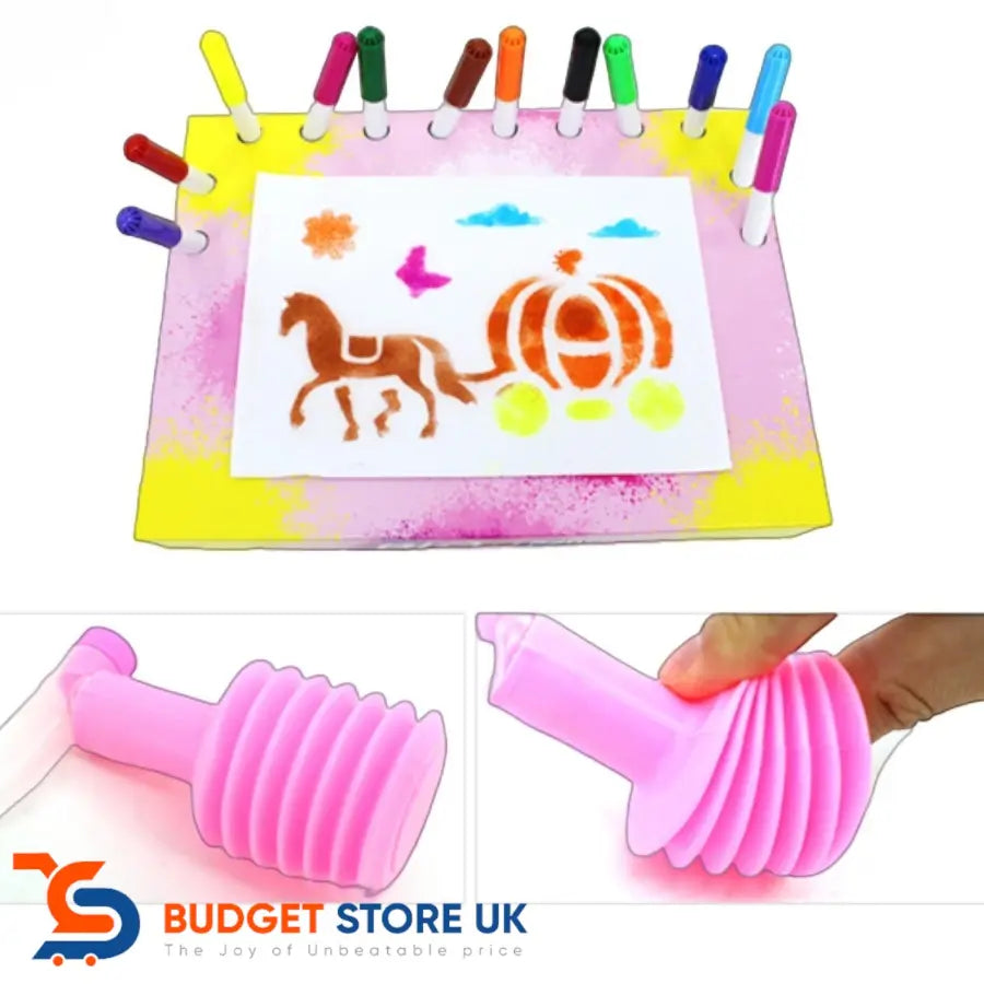 Fuel Young Imaginations with the Blow Pens Pink Fantasy Kit, exclusive to Budget Store UK! This all-in-one set lets children create fantastical airbrush pictures, exploring mythical creatures, faraway galaxies, and everything in between.